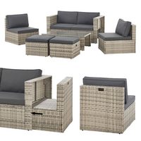 Juskys Gartenlounge-Set Salou, (6-tlg), für 6 Personen, Polyrattan, Glasplatte, wetterfest, mit Kissen