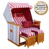 BRAST Strandkorb für 2 Personen, 120cm breit, 5 Designs, BxTxH: 120x79x150 cm, Volllieger, Rügen Deluxe, (verstellbare Rückenlehne weiches Fußkissen), inkl. wetterfeste Abdeckhaube
