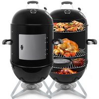 SunJas Holzkohlegrill CA-6146 mit Deckel,Thermometer und Doppel-Seitenablagen, Grillfläche:50 x 42 cm, Gartengrill BBQ Grillwagen XXL Holzkohlegrill