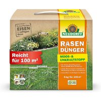 Neudorff Газонное удобрение RasenDünger Moos- & UnkrautStopp 5 kg, Einzelartikel, Eisen und Kalium sorgt für dichten, grünen Rasen ohne Moos und Unkraut, auch für Rasenflächen geeignet, die mit Mährobotern gepflegt werden