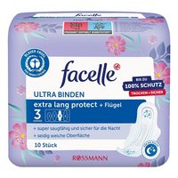 facelle Прокладки Ultra Прокладки extra lang protect + Flügel, 3 von 4 Gr., 10 Stück