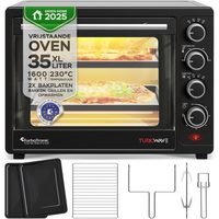 TZS FIRST AUSTRIA Minibackofen Pizzaofen mit Kochplatten, 60L, 3400W, Mini Backofen mit Umluft, max 230°C, Backblech, Drehspieß, Grillrost, Innenbeleuchtung