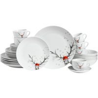 CreaTable Kombiservice Luna Hirsch (30-tlg), 6 Personen, Porzellan, winterliches Hirsch-Motiv