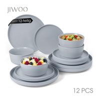 JIWOO Geschirr-Set 12tlg Kombiservice,Tafelservice,Teller-Sets,Geschirr-Frühstückssets (12-tlg), 4 Personen, Keramik, Keramik-Geschirrset,Mikrowellen-und spülmaschinenfest,Matt