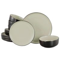 my home Столовый сервиз Madeline (12-tlg), 6 Personen, Porzellan, Geschirr, trendige Coupeform, handgemalte, schwarzes Liniendekor