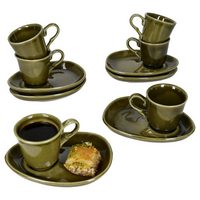 MamboCat Tasse 6er Set MOKKA Espressotassen & Untertassen Olivgrün für 6 Personen, Porzellan