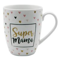 Geda Labels GmbH Tasse Super Mama Herzen, Porzellan, Weiß, 320ml, spülmaschinengeeignet