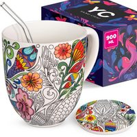 Yang Chai Becher 900ml, große Teetasse - Jumbotasse Geschenkset mit Untersetzer, Pozellan, Kaffeetasse, Riesentasse, Jumbo Tasse