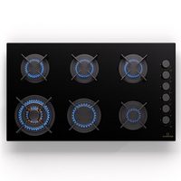 Gas-Kochfeld Einbau Gaskochfeld 90cm, Schwarz Glas, Einbau Herd, 3,8kW WOK KCG 9387