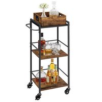 VASAGLE Servierwagen, Küchenwagen mit abnehmbarem Tablett, Rollen, vintage
