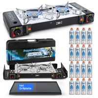 ZMC Gaskocher Edelstahl Gaskocher 1-flammig + Aufbewahrungskoffer + 8x Gaskartuschen, (Butangas Campingkocher für Innenraum/Outdoor, Campinggaskocher 2,2 kW mit Piezozündung), Kochfeld Herd Gaskocher mit Kartusche, Gaskochfeld für Camping