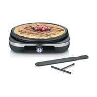Severin Раклетници RG 2373, 8 Раклетнициpfännchen, 1700 W, Naturgrillstein, Gussplatte, Temperaturregler, Antihaftbeschichtung