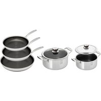 HENSSLERS Topf-Set, Edelstahl (Set, 5-tlg., 1 Universaltopf Ø 20 cm und Ø 24 cm mit Deckel, 1 Stieltopf 2,2 l), Mehrschichtmaterial für hohe Beständigkeit und Kratzfestigkeit