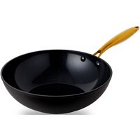 HENSSLERS Wok HSN, Aluminium (1-tlg), BLACK CERAMIC Antihaftbeschichtung, goldener Edelstahlgriff, Induktion