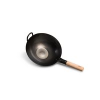 pasoli Wok voreingebrannter, traditionell handgehämmerter Wok mit flachem Boden, Karbon-Stahl, Voreingebrannt, Traditionell Handgehämmert, flacher Boden