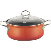 Riess Kasserolle Riess Kasserolle mit Glasdeckel Koralle Durchmesser 16cm, Emaille