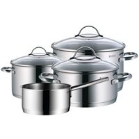 WMF Topf-Set Inspiration Induktion, Kochtopf Set mit Glasdeckel, Cromargan® Edelstahl Rostfrei 18/10 (Set, 11-tlg., 2x Bratentopf Ø 16/20cm, 3x Fleischtopf Ø 16/20/24cm, Stieltopf Ø 16cm), für alle Herdarten geeignet, unbeschichtet