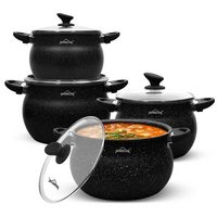 HOMELUX Topf-Set Induktions Кастрюли Set Classic Antihaftbeschichtung Kochtopfset, Aluminium (Kochgeschirr-Set, 15-tlg., 3x Kochtopf, 2x Bratpfanne,1x Saucentopf,4x Glasdeckel,5x Zubehör), Induktionsgeeignet