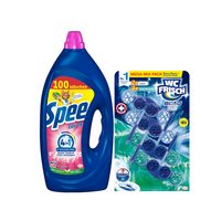 Spee 4 in 1 Color Gel 100 WL & WC FRISCH Kraft Aktiv Blauspüler Mega-Pack Цветное моющее средство (Spar-Set, [2-St. Flüssigwaschmittel & Toilettenstein für Reinheit & Sauberkeit)