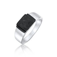 Siegelring Onyx Stein Schwarz Massiv 925er Sterling Silber, Rhodiniert Made in Italy für Damen und Herren