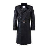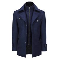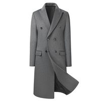 Allthemen Langmantel zweireihiger Herrenmantel in Uni Optik warmer Wintermantel