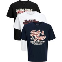 Jack & Jones T-Shirt Herren Basicshirt JJECHARGE 3er Set Pack Oversize Fit (Vorteilspack, 3-tlg) Kurzarm Tee Shirt mit Rundhalsausschnitt aus 100% Baumwolle