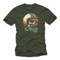 MAKAYA T-Shirt Herrenshirt mit Totenkopf Design - Tattoo Funshirt für Rockfans (Schwarz, Blau, Grün, Blaugrau, Grau, S, M, L, XL, XXL, 3XL, 4XL, 5XL) Baumwolle