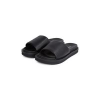 Calvin Klein Jeans FLAT MOLDED SLIDE SANDAL LTH Pantolette, Poolslides, Sommerschuh, Strandschuh, Schlappen mit CK Prägung