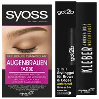 Syoss Augenbrauenfarbe Hellbraun 17ml & GOT2B 2in1 Stylinggel 4 Brows & Edges Waterproof 16ml, 2-tlg., langanhaltend, schweiß- & wasserfest bis zu 24h