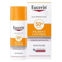Eucerin Sonnenschutzcreme Pigment Control Sun Fluid LSF 50+ – Hoher UV-Schutz für Gesicht, Thiamidol & Licochalcone A reduzieren, Pigmentflecken sichtbar & verhindern neue – 50 ml
