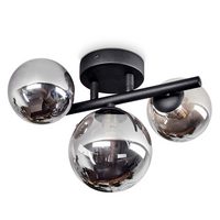 hofstein Deckenleuchte Deckenlampe aus Metall/Holz/Glas in Schwarz/Natur/Bernsteinfarben, ohne Leuchtmittel, Leuchte im Vintage-Design mit Glasschirmen (10cm) und Holzbalken, G9