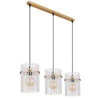hofstein Hängeleuchte Hängelampe aus Metall/Riffelglas in Schwarz/Goldfarben/Klar, ohne Leuchtmittel, Leuchte im Retro/Vintage-Design m. Glasschirmen (15,20,25,30cm), E27