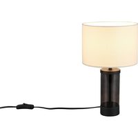 Guido Maria Kretschmer Home&Living Schreibtischlampe Stellan, Tischlampe Glas rauchfarbig Stoffschirm beige Schnurschalter, Ein-/Ausschalter, Leuchtmittel wechselbar, warmweiß - kaltweiß, Design Tischleuchte Nachttischlampe m. Schnurschalter Höhe 34cm Ø 20cm