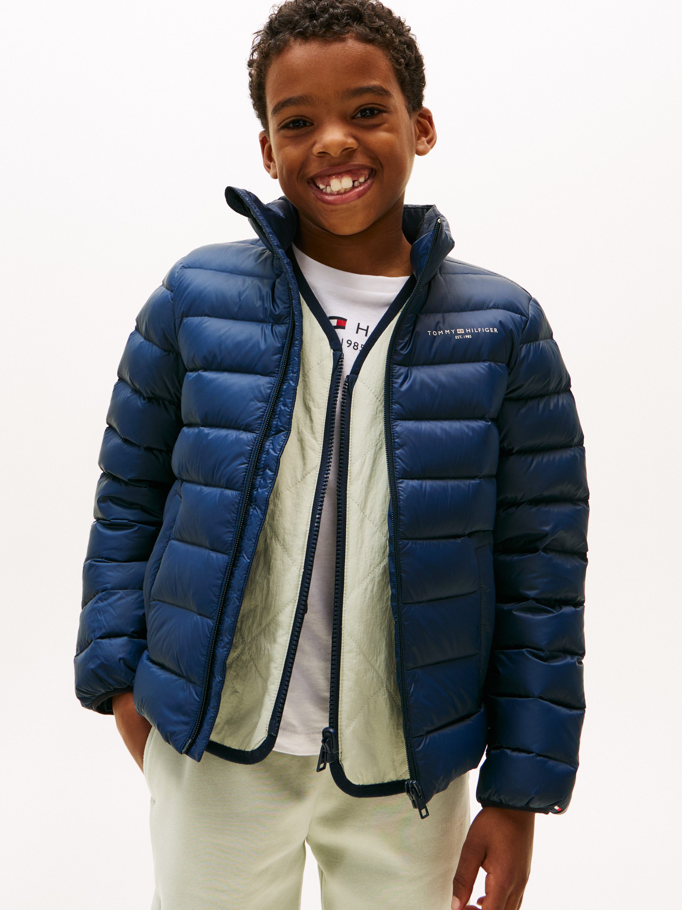 Tommy Hilfiger Steppjacke ESSENTIAL LIGHT DOWN JACKET für Kinder bis 16 Jahre, Logodruck auf der Brust