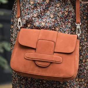 Setze mit den Schuhen und Accessoires farbige Hingucker. Hier kommen eine eckige rote Sonnenbrille, farblich passende Slingpumps und eine Tasche mit geflochtenem Schulterriemen zum Einsatz – so wirkt der Look klassisch und elegant. Je nach Geschmack kannst du aber auch zu anderen Farben wie Blau, Orange oder Flieder greifen.