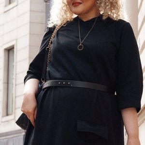 Der leichte A‑Linien-Schnitt des Sweatkleids betont die Taille. Mit einem Gürtel kombiniert wird das weit geschnittenen Sweatkleider noch etwas figurbetonter.