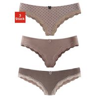 LASCANA Slip (3er-Pack) aus elastischer Baumwolle mit zarter Spitze