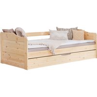 Ticaa Hochbett Hochbett „Felix“ mit Schreibtisch Kiefer massiv Optimale Raumnutzung, Schreibtischplatte Maß L206 x B50 cm