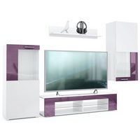 Vladon Highboard Nora (Anrichte mit 2 Schubladen und 4 Türen, mit insgesamt 8 Fächer dahinter), Anthrazit matt/Brombeer Hochglanz (166,5 x 106,5 x 35 cm)