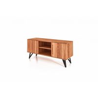 Natur24 Lowboard TV-Board Rolo Kernbuche massiv 136x45x61 Metallbeine 2 Türen 2 Fächer