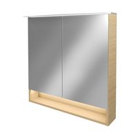 FACKELMANN Spiegelschrank PE 100 - weiß Badmöbel Breite 100 cm, mit 3 Türen und beleuchtetem Unterboden
