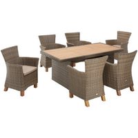 MERXX Garten-Essgruppe Toskana, (13-tlg., 6 Кресла, 1 Wangentisch 185x90 cm, inkl. Sitzkissen), Aluminium, Polyrattan, Akazienholz FSC 100 %, geeignet für 6 Personen