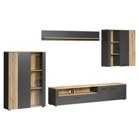 trendteam Wohnwand, Anbauwand inkl. Beleuchtung Eiche Sägerau hell 291x197x41 cm