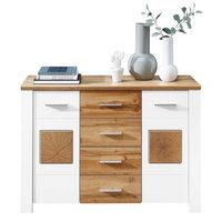 Vito Kommode FONTE, B 129 cm x T 40 cm, Weiß matt, 4 Schubladen, 2 Türen, Frontplatte aus Weißglas