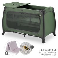Hauck Baby-Reisebett Play'n Relax Center - Dark Green, Babyreisebett mit Matratze, Insektenschutz, Wickelauflage, Einhang
