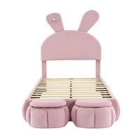 HAUSS SPOLE Polsterbett 90x200 mit 2 Aufbewahrungshockern, ausklappbare Hasenohren, Samt Rosa