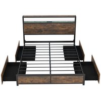 COSTWAY Bettgestell, mit LED Beleuchtung, Ladestation & 4 Schubladen. 140x200cm