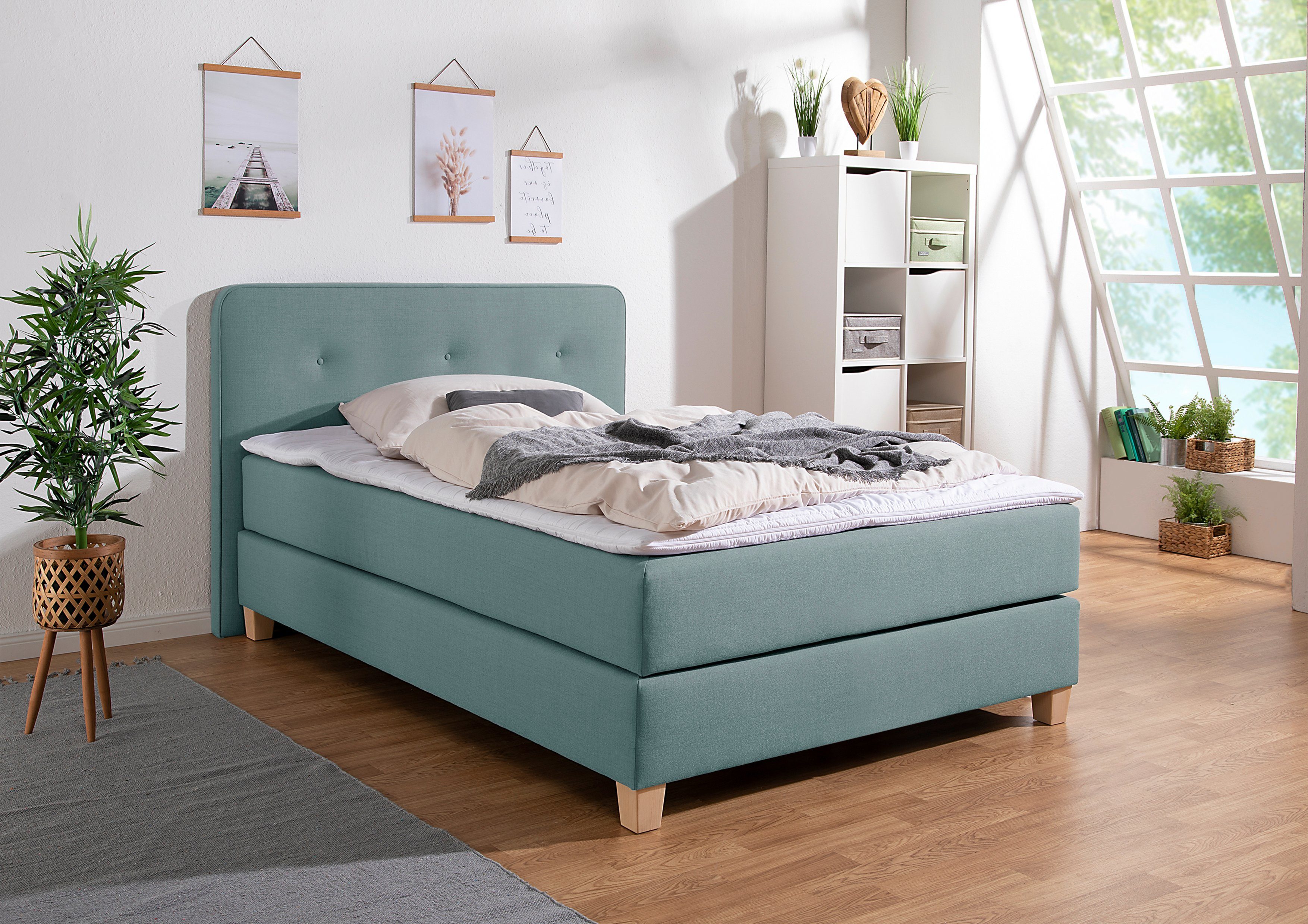 Sofnet Boxbett Star Mini (mit Bettkasten, Bonell-Matratze und Topper), Einzelbett, Polsterbett mit Kopfteil, Boxspringbett, Kinderbett