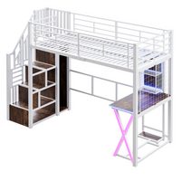 BlingBin Einzelbett Polsterbett Jugendbett (1-tlg., Jugendbett mit LED, hydraulischem Stauraum und USB Type-C Aufladen), 90x200 cm, mit Holzlatten, Leinen, ohne Matratze