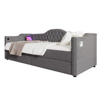 SOFTWEARY Futonbett mit Lattenrost und 2 Schubladen (90x200 cm), ohne Kopfteil, Einzelbett, Holzbett